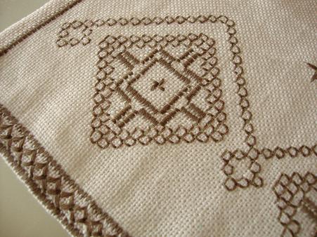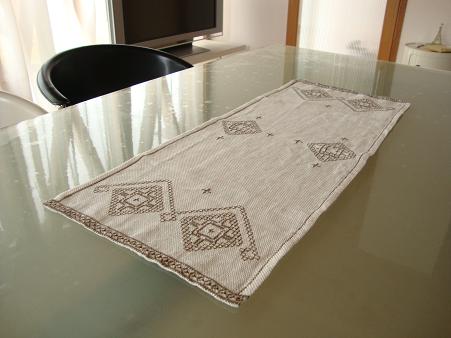 ここではスェーデン製のテーブルセンターに一目ボレ。
