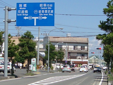 右に曲がってしばらく行ってから長良川の堤防沿いを走っていくルート。