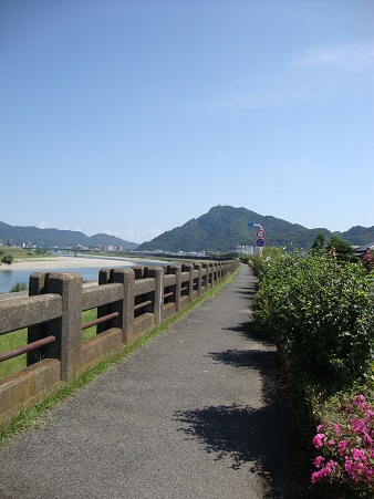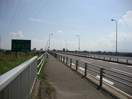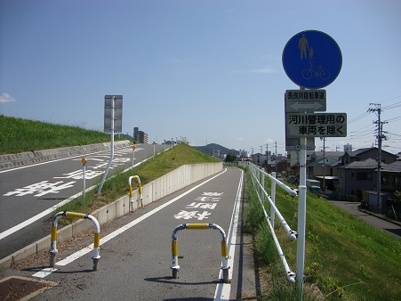 長良川自転車道って言うらしいんだけど、堤防の中段に位置しているから